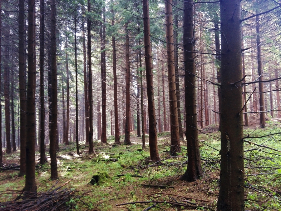 Początkowo Główny Szlak Sudecki prowadzi nas doliną Wilczki, do końca Międzygórza. Potem dość szeroką leśną drogą, czasem ścinając jej zakręty ostro w górę. A że my jesteśmy tu późnym popołudniem to mijamy setki ludzi schodzących ze szlaku n Śnieżnik. Wysłuchujemy dziesiątek opowieści o armagedonie w schronisku i na szczycie. Jest weekend i ładna pogoda, więc na szlakach oblężenie. Jedni opowiadają nam, że chcieli się napić w schronisku kawy. Kiedy tam dotarli przed południem, pod schroniskiem stała długa kolejka, Postanowili zdobyć szczyt Śnieżnika, z nadzieją, że gdy wrócą, kolejki nie będzie. Zawiedli się, bo ani o milimetr się ona nie zmniejszyła. Schodzili głodni. Rzeczywiście ani na moment nie byliśmy sami na szlaku: my wchodziliśmy, a tłumy schodziły.
