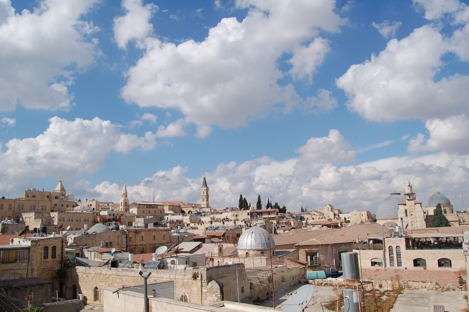 Dlatego, by odetchnąć świeżym powietrzem, uciekamy i wędrujemy po dachach jerozolimskich domów, tak szczelnie wypełniających przestrzeń, że można spacerować z jednego końca miasta na drugi…