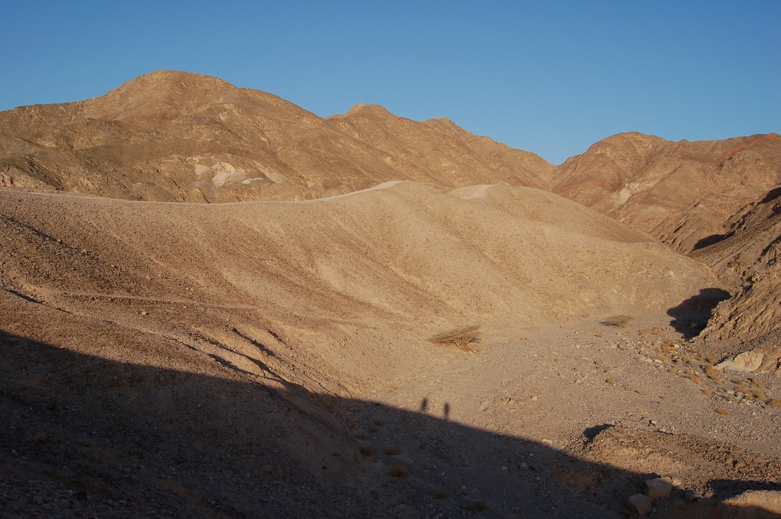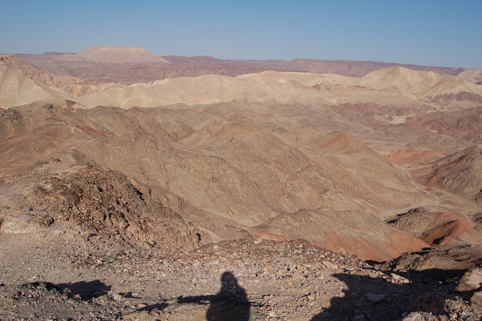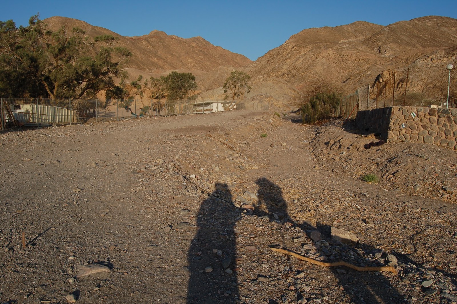 W końcu siadamy wykończeni. Już wiemy, że popełniliśmy błąd. Jesteśmy za wolni, zbyt obciążeni (16 litrów wody i jedzenie na tydzień, ponadto cała reszta: potrzebna na całe 1,5 miesiąca to w tym momencie za dużo, a nie możemy przejść tego odcinka w dłużej niż dwa dni, bo zabraknie nam wody, która jest dopiero w Timna Park), a także jesteśmy nie zaaklimatyzowani do tej temperatury. Kontynuowanie szlaku zabije całą radość z wędrowania. Będziemy się męczyć, nie cieszyć. A poza tym powstanie problem zdobycia wody. Dlatego podejmujemy trudną decyzję, przez którą stracimy jeszcze jeden dzień: jedziemy zacząć marszrutę od północy. Kiedyś tu dojdziemy. Wybieramy więc szlak, który prowadzi w dolinkę, dzięki czemu zrobimy pełne koło wracając do Eilatu. I tu zdziwienie, bo w dolince znajdujemy miejsce wyznaczone na nocne obozowisko. Rozbijamy więc namiot, bo i tak musimy poczekać do rana na autobus, bo jest sobota, dzień w Izraelu ekstremalnie niepracujący.