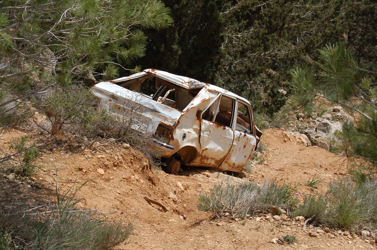 Potem zaczynamy schodził w dół, spotykając kolejne kilka osób (tłoczno dziś!), aż szlak staje się bardzo stromy, nawet niektóre samochody nie wyrobiły kiedyś na zakręcie i teraz straszą zwisając: