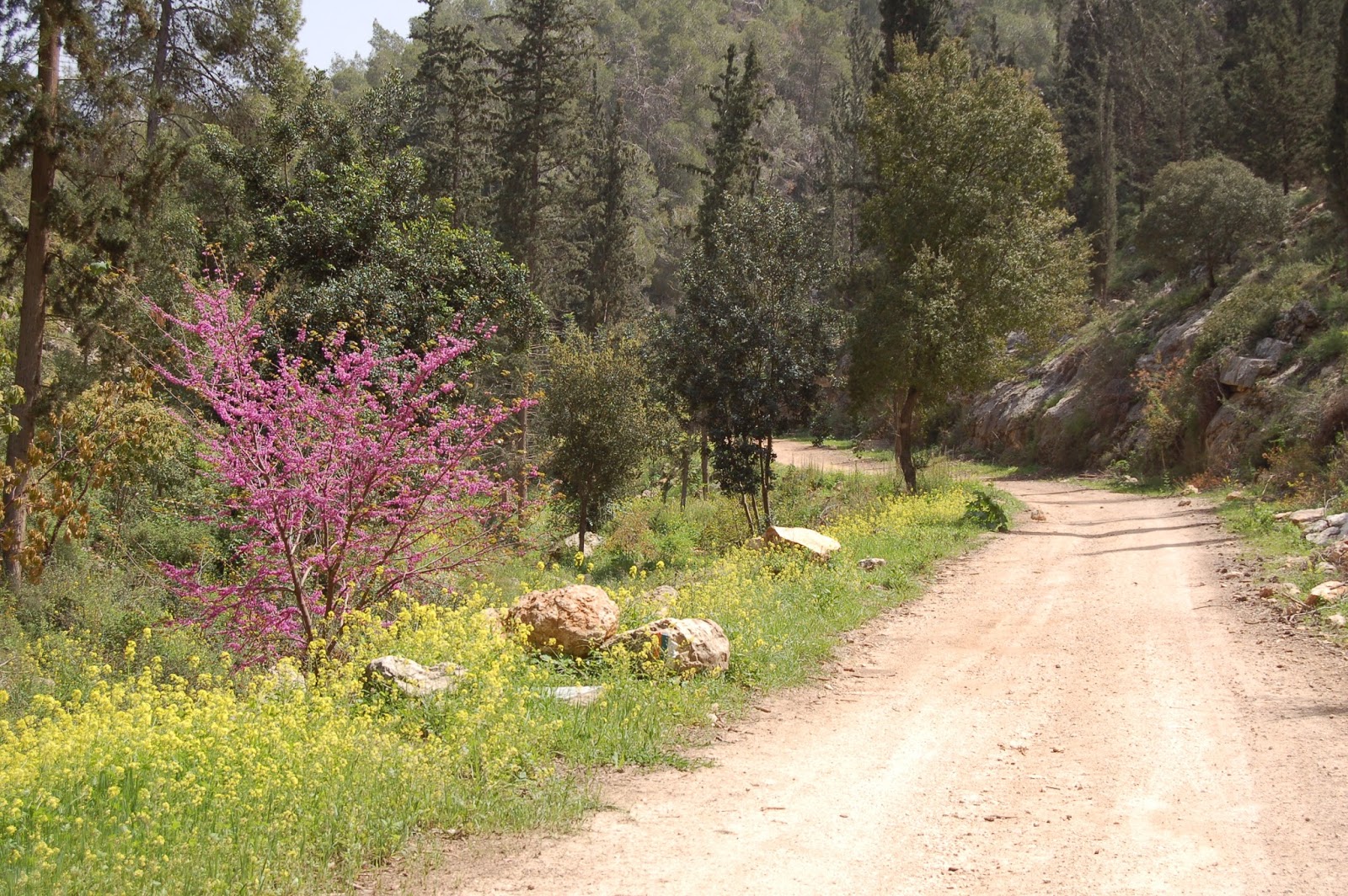 Nie pozostaje nam nic innego jak pójść dalej – schodzimy do dolinki z Bnei Brit Memorial Cave, zasadzono tu sześć milionów drzew ku pamięci ofiar Holokaustu. W tym samym momencie podjeżdża tu kolumna samochodów, wszystkie białe terenówki, z których wysiadają Amerykanie, zapewne jedni ze sponsorów. Nawet gdy odchodzimy słychać jeszcze jakieś przemówienia a oklaskami …. Reszta drogi tego dnia przyjemna i kolorowa ….