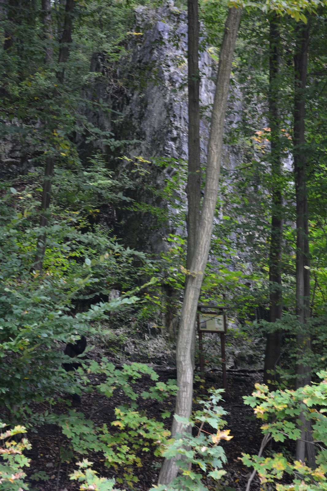 Stąd idziemy dalej w dół rzeki, aż wspinamy się na zbocze góry w kierunku grupy skałek karbońskich, zbudowanych z wapienia, powstałych około 650 mln lat temu.