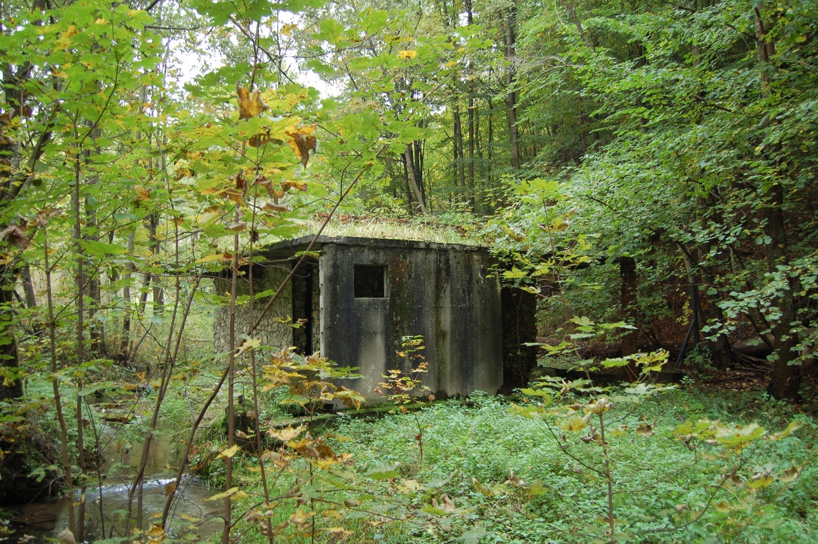 Zawracamy. Gdy już dojdziecie do drogi asfaltowej i pójdziecie nią w kierunku parkingu, nie zapomnijcie spojrzeć w prawo, w las. Tak, właśnie tu odnajdziemy kolejny punkt na naszej trasie, przy którym powinniśmy się znaleźć już dużo wcześniej: Skałki przy mostku: