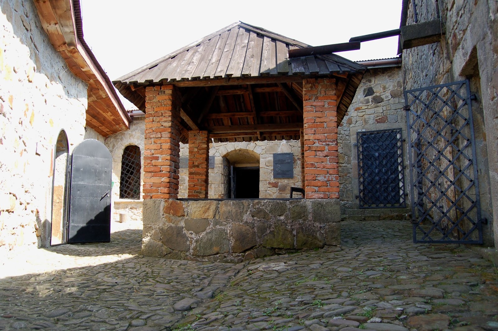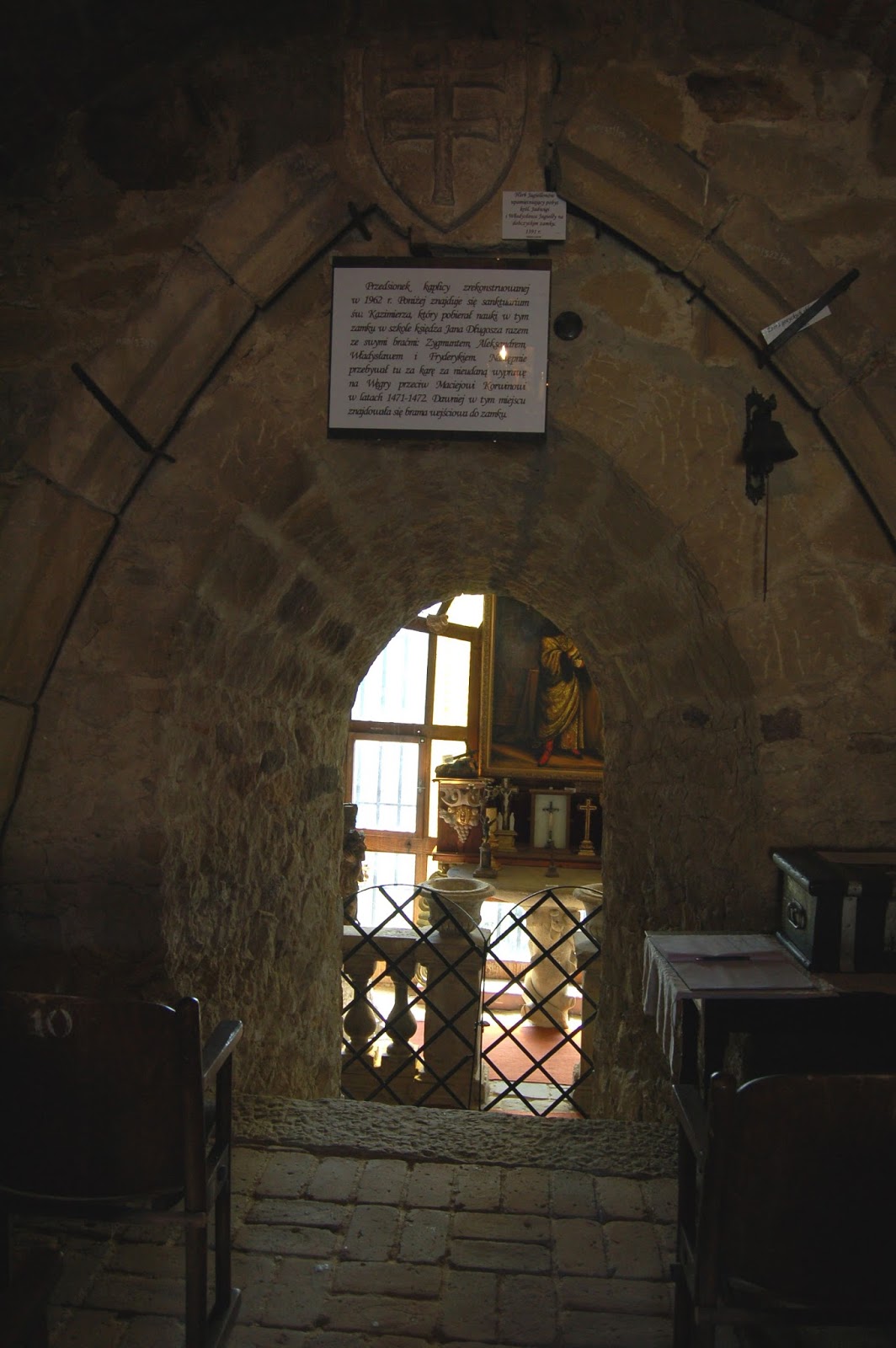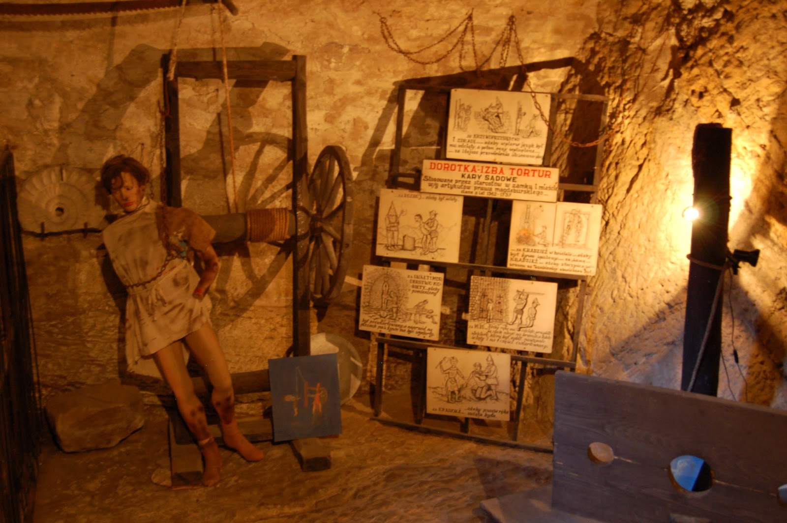 Mijamy salę z piecami, z kominkiem (zrozumiałe, że w tych murach bywało okropnie zimno), kaplicę, by dojść do stali historycznej i lochu…