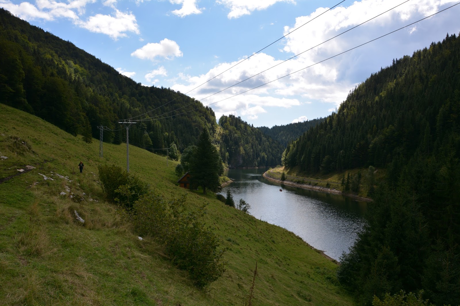 Zazwyczaj najważniejszym punktem przemierzenia szlaków jakiego pasma górskiego staje się zdobycie jego najwyższego szczytu. Dlatego też nikogo nie powinno zdziwić, że przy w miarę ładnej pogodzie i my wybrałyśmy się na szczyt Słowackiego Raju – Havranią Skałę. Najpierw oczywiście opuściłyśmy nasz Podlesok i wyruszyłyśmy na południowy kraniec Raju, do Dedinek nad zalew. Droga wąska i kręta pomiędzy Spiską Nową Wsią a Dedinkami była w trakcie remontu, więc odcinkami była lepsza lub gorsza. Szczerze to nie chcę sobie wyobrażać jak wyglądała wcześniej. W każdym bądź razie moje tempo jazdy nie przekraczało 20km/h. Oczywiście tylko moje! Miejscowi ze swoimi samochodami z wysokim zawieszeniem pruli przed siebie bez zastanowienia… Ale w końcu dojechałyśmy, znalazły hotel z polem namiotowym i domkami, tani. Dedinky to urocza wymierająca wieś, z dużą liczbą miejsc noclegowych i jedynym w swoim rodzaju sklepo – barem, w którym zatrzymał się czas: kastry piwa, mało produktów i pan pijący od rana… Przytłumione światło w dzień… I to wszystko nad małym zalewem, z łódkami i rybakami…
