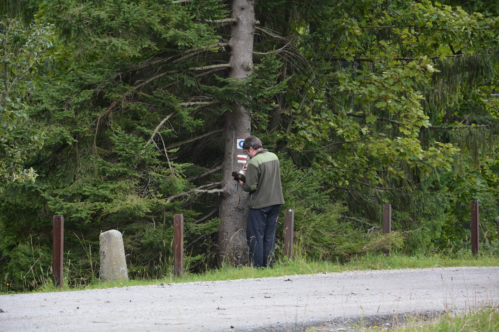 Gdzie spotkałyśmy pracownika Parku odnawiającego szlak. Miał ze sobą malutka skrzyneczkę z farbkami…