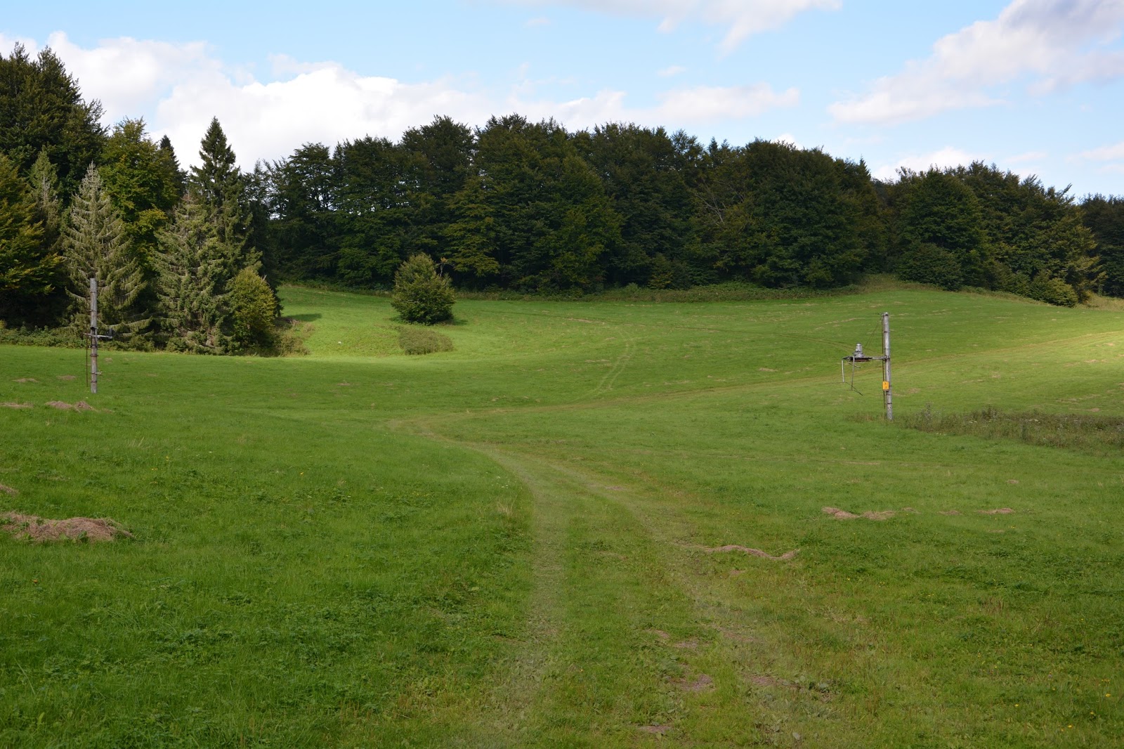 Aż dochodzimy do szerokiej polany, która zapewne niegdyś była stokiem narciarskim.