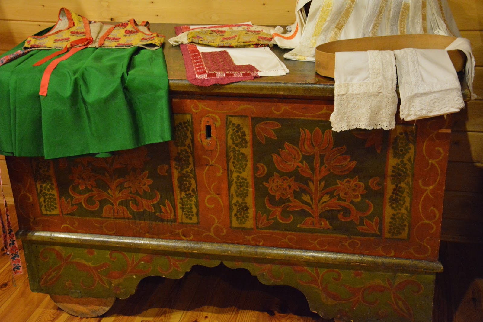 Na parterze oglądamy wnętrza domu z epoki z warsztatem sukienniczym, na górze w chwili obecnej wystawa strojów ludowych z okolic 😉