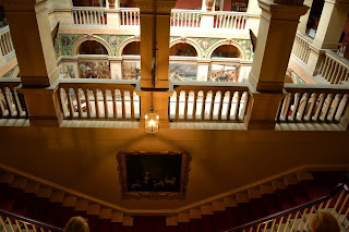 Budynek w rzeczonym stylu wybudował architekt Daniel Garret. |Prosty, rytmiczny i stosownie urządzony. Na początek zapewne każdego przytłoczy lekko nie najwyższych lotów mural – 8 przeogromnych malowideł na ścianach głównego holu, przedstawiających historię wydarzeń na granicy, czyli Nortumberlandii, wykonanych przez lokalnego, w sumie szkockiego artystę Williama Bella Scotta: