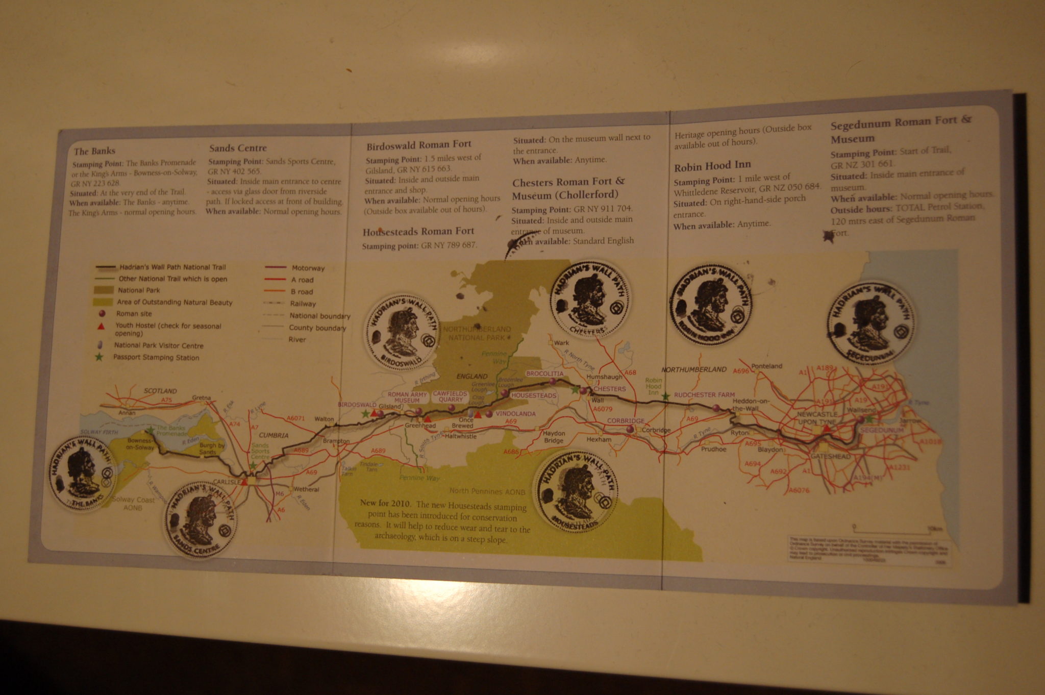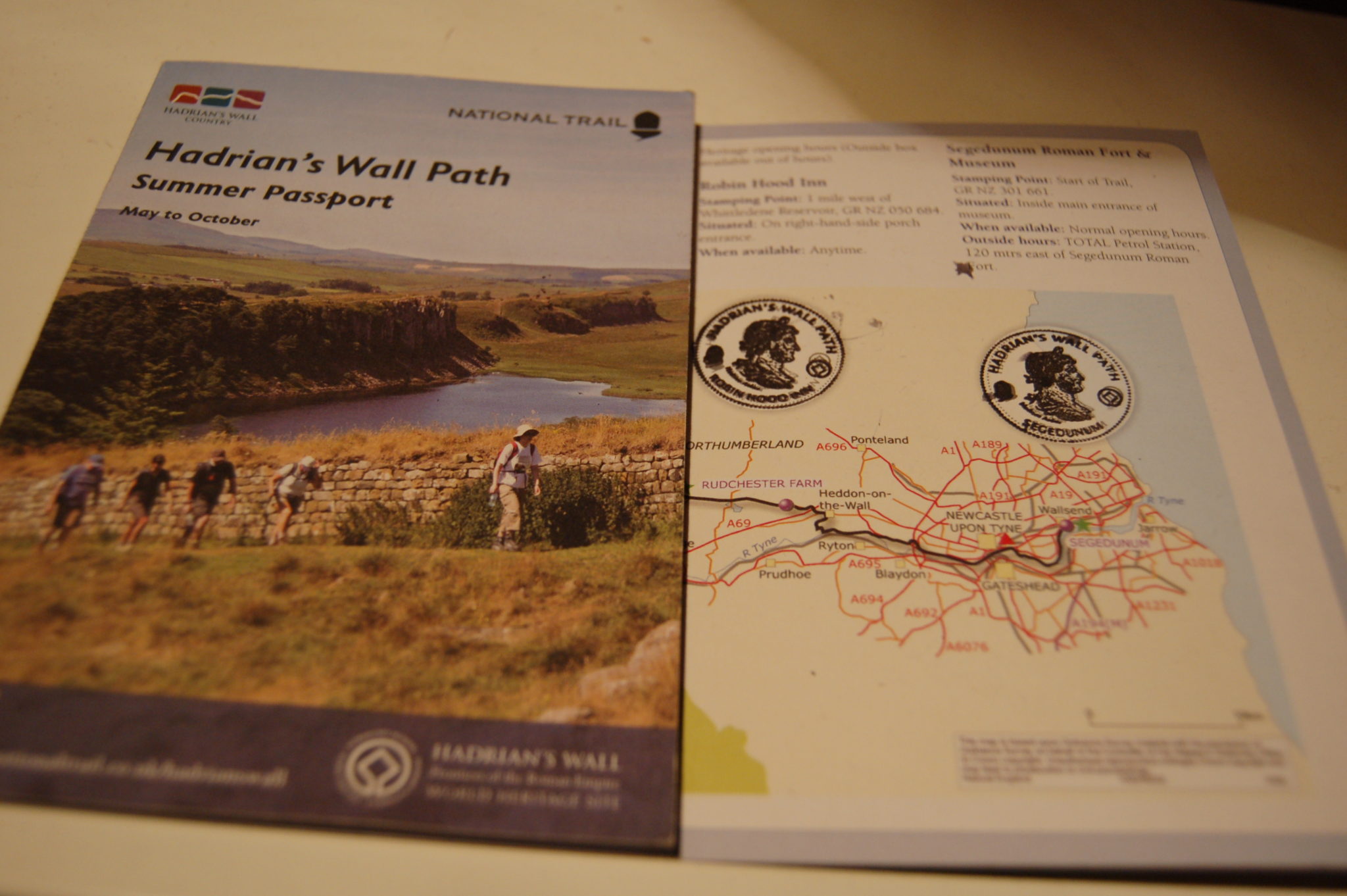 Samochód parkujemy w Gateshead Metro Centre (za darmo), autobusem podjeżdżamy do centrum miasta, gdzie przesiadamy się na autobus miejski do Wallsend (zwiedzamy jednakże inną część miasta gdyż autobus nie zmienił kierunku na tablicy i wsiedliśmy w ten jadący w druga stronę, po przejażdżce wsiedliśmy w ten sam jadący już w dobra stronę). Dojeżdżamy i w Segedunum Roman Fort kupuję Hadrian’s Wall Path Summer Passport, w którym zaraz wbijam pierwszą pieczątkę – z naszego startu. Pada deszcz, ale atakujemy…