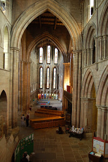 Następnym w kolejności miastem było Hexham. Z polskiego punktu widzenia niewielkie (nieco ponad 11 tysięcy mieszkańców) miasteczko handlowe w Northumberland nad rzeką Tyne. Historia miasteczka sięga 674 roku kiedy to w tym miejscu Święty Wilfryd ufundował klasztor. Z czasów tych przetrwała oryginalna krypta, która w dużej części składa się z kamieni z pobliskich ruin muru Hadriana. Mury opactwa, które możemy dzisiaj zwiedzać pochodzą w niewielkiej części z XI wieku, w większości zostały przebudowane w wieku XIX. W samym miasteczku wytyczono trzy spacerowe trasy turystyczne, którymi