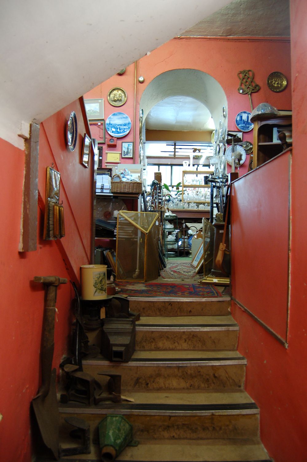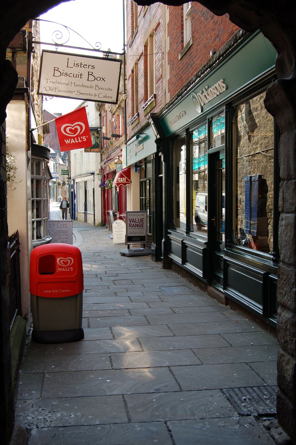 Cóż, można by znaleźć dużo więcej ciekawym miejsc w tymże miasteczku, ale po co? Wiadomo, że to miasteczko handlowe, więc jeździmy tu na zakupy. Darmowe parkingi: 3 godziny pod Tesco, 24-godzinny darmowy zaraz za mostem wjazdowym w prawo w dół nad rzeką, przy informacji turystycznej kilka funtów za cały dzień. Zostawiamy samochód i kupujemy:). A sklepów organizacji charytatywnych tu co niemiara, a także fantastyczny antykwariacik, bo kto nie chciały kupić zastawy stołowej z królową…