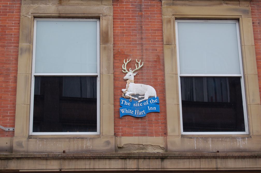 ale szyld pozostał. Jak też szyld po zajeździe White Heart Inn: