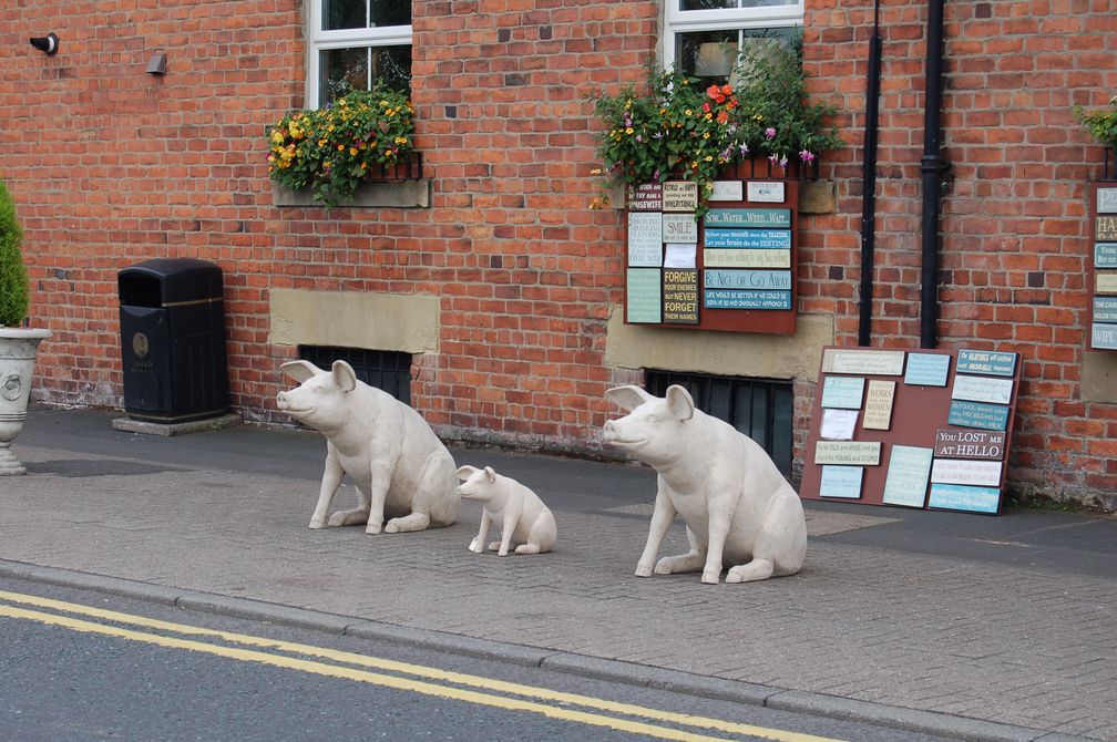 Schodzą w dół, mijamy współczesne “cudeńka” jak Tesco i inne świątynie zbytku i dochodzimy do stacji kolejowej, zajazdu obok do stadionu, który niegdyś był wielkim sadem (Hexham było znane z rynku owoców i warzyw):