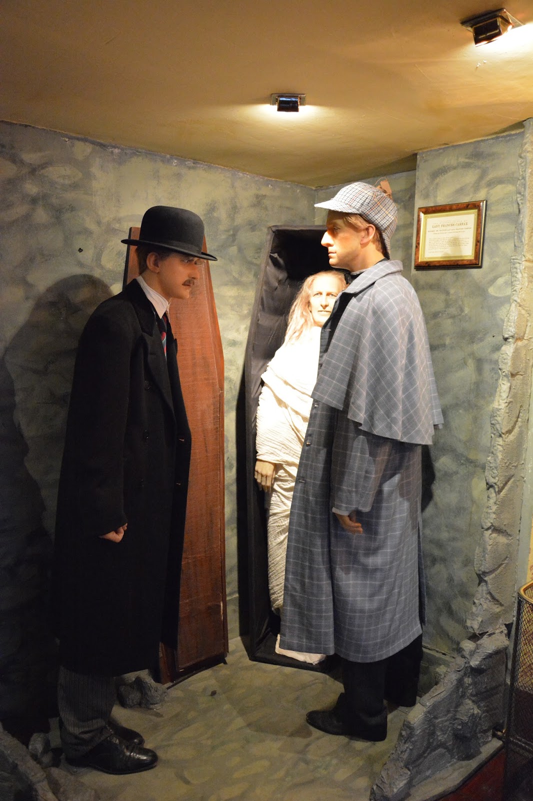 Generalnie muzeum wygląda trochę jak graciarnia, z mnóstwem przedmiotów z epoki, wypchanym ptaków, instrumentów medycznych, książek, obrazków itp. Na kolejnym piętrze z kolei przygotowano pokoiki, z przedstawieniami ofiar morderstw z poszczególnych powieści czy opowiadań o detektywie z Baker Street, w pozach w jakich zostały znalezione.